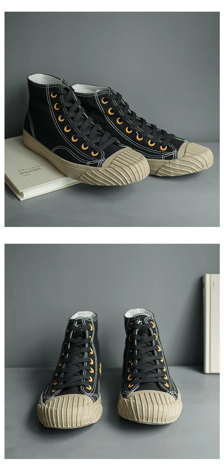 Vulcanized sole: The rubber is baked directly onto the canvas (a "Free Flexible" process). This ensures that the sole will not peel off, unlike modern glued sneakers.